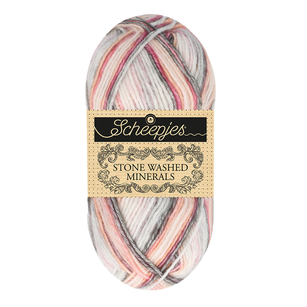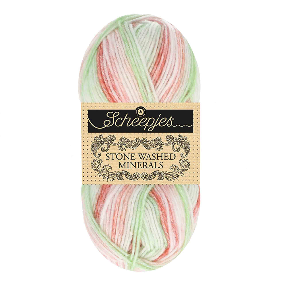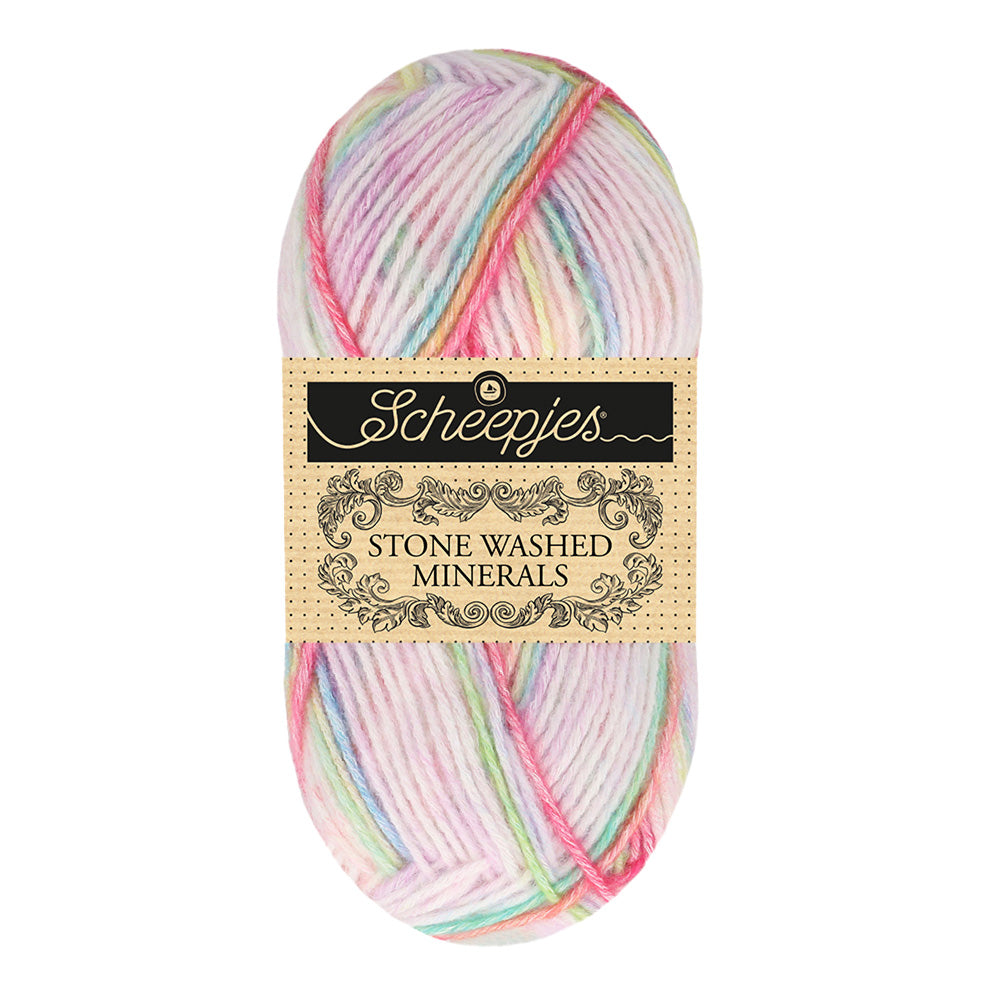 Scheepjes Stone Washed Minerals is een variatie op het vertrouwde Scheepjes Stone Washed. Hetzelfde zijdezachte garen, maar dan met een prachtig kleurverloop. Het karakteristieke Stone Washed uiterlijk komt door de unieke productiemethode van dit garen: in een netje van ecru-kleurig katoen worden kleurige en donzige acrylvezels geblazen. Het garen heeft de ademende kwaliteit van katoen, maar is dankzij het acryl sterk en gemakkelijk in onderhoud. Die combinatie maakt Scheepjes Stone Washed Minerals ideaal voor de meest uiteenlopende brei- en haakprojecten en bovendien geschikt voor elk seizoen.