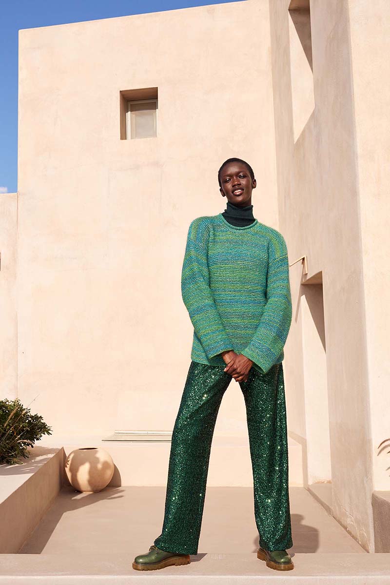 Glamour 36% Polyester metallise, 30% polyamide, 25% mohair, 9% wool